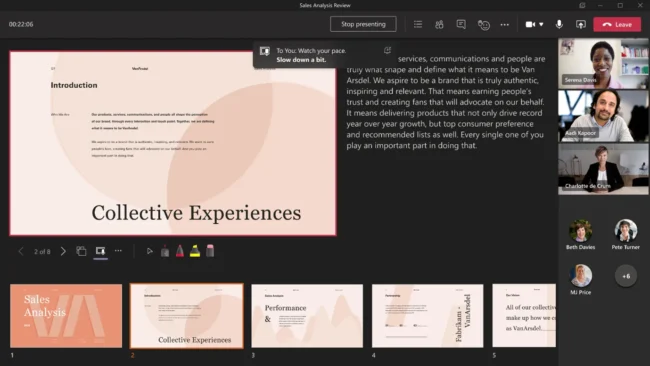 Speaker Coach will change the way you present. Available for Teams Meetings, Speaker Coach provides private, personalised feedback on your speaking and presentation skills in both real-time as well as post-meeting in a summary. Speaker Coach evaluates your pacing, pitch, your use of filler words, informal speech, euphemisms, and culturally sensitive terms, and it detects when you’re being overly wordy or are simply reading the text on a slide. This is an invaluable tool for anyone who gives presentations as it allows you to prepare in private to ensure your presentations are engaging and effective.