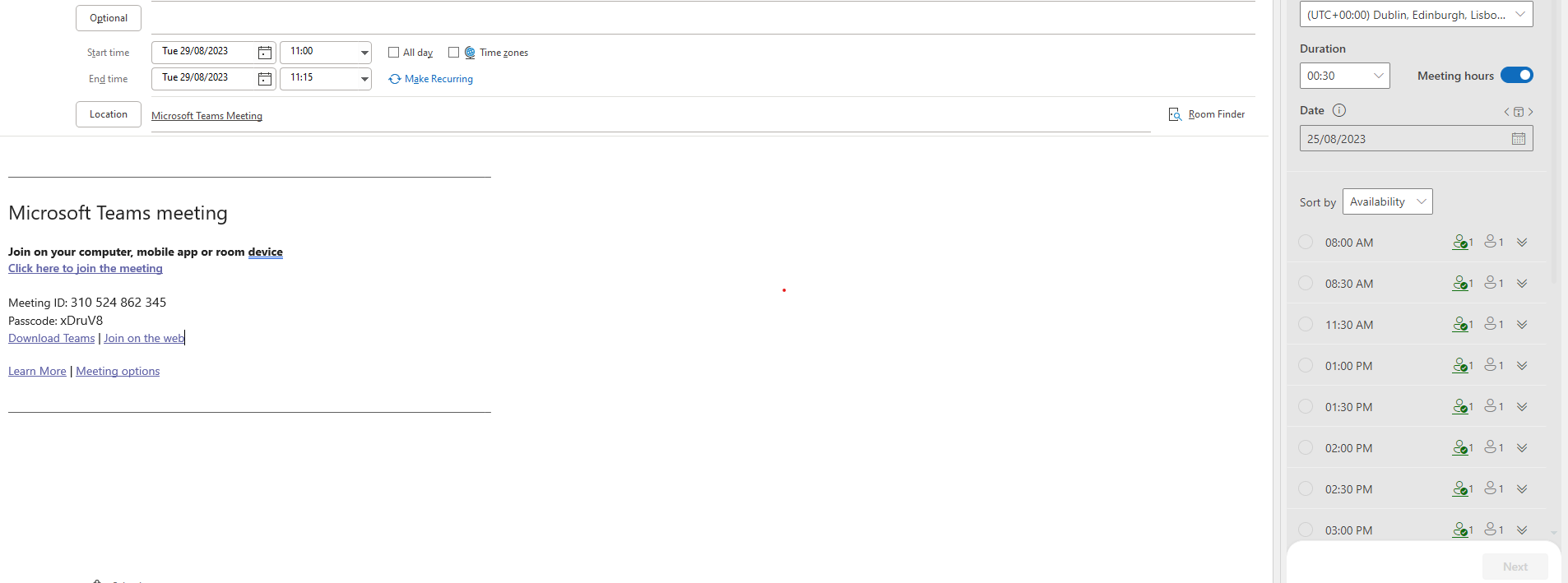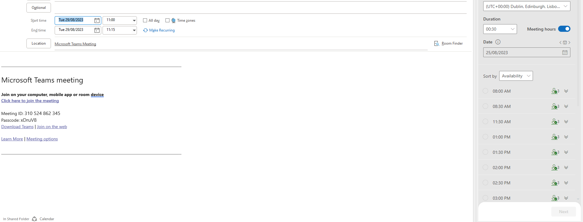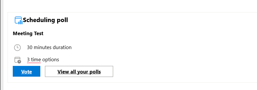 As you can see, you have choice. You can choose a time you prefer by voting in the poll. The sender can also see if you’re able to attend or not attend during this time. It’s really convenient for larger meetings or ones that might be more sensitive such as a 1-2-1. Likewise, if you require the input of key stakeholders, you’ll need to find a time that works best for all.