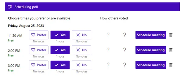 Using Scheduling Poll means your meeting attendees have more autonomy to select a meeting time that works for them. You might find certain colleagues prefer to block out time in their calendars simply to get their heads down. By offering them a choice, you let them consider their schedule and give them the autonomy to decide when is best.