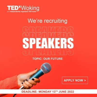 If you want to be part of an afternoon of inspirational and enlightening talks, please submit your idea by signing up to become a speaker for this year’s TEDx Woking (note that the deadline for applications is 13 June 2022). You need to apply here.